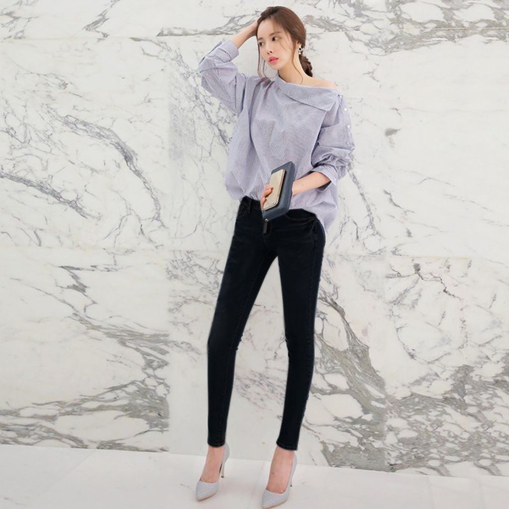 Type: Long Sleeve Collar:Slash neck Decoration:Button Pattern:Striped Seasons:Spring/Summer/Fall/Winter/All Seasons
